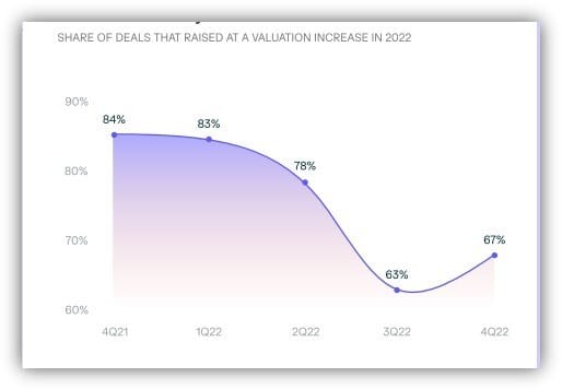 As AngelList notes: “Venture performance saw a slow, and then sudden, decline in 2022… In 3Q22, turbulence in the broader market trickled down to the early-stage market in a major way, with deal volume and positive activity dropping to levels not seen since the onset of the pandemic. While positive activity rebounded slightly in 4Q22, early-stage venture capital (VC) performance remained historically depressed at the end of 2022.”