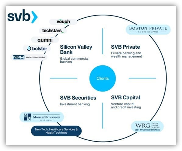 Until recent events, the bank served “clients primarily in the technology and life science / healthcare industries as well as global private equity and venture capital industries. The Bank provide[d] solutions to the financial needs of [its] commercial clients through credit, treasury management, foreign exchange, trade finance and other financial products and services.” The bank operated four principal businesses:
